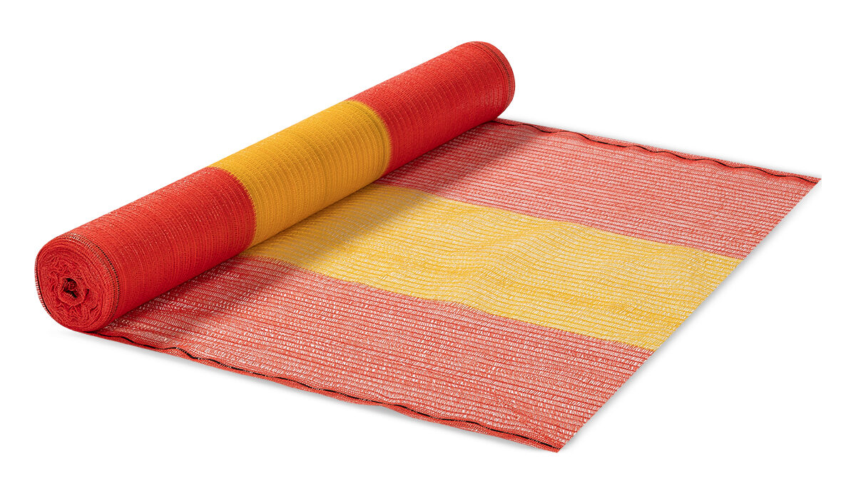 Our Woven Safety Barrier Mesh is an economy mesh for short-term projects and is a bright red colour with a broad yellow centre band, knitted using UV stabilised polypropylene (PP), with black tape at the top and bottom for ease of securing. It is ideal for sectioning off construction sites.